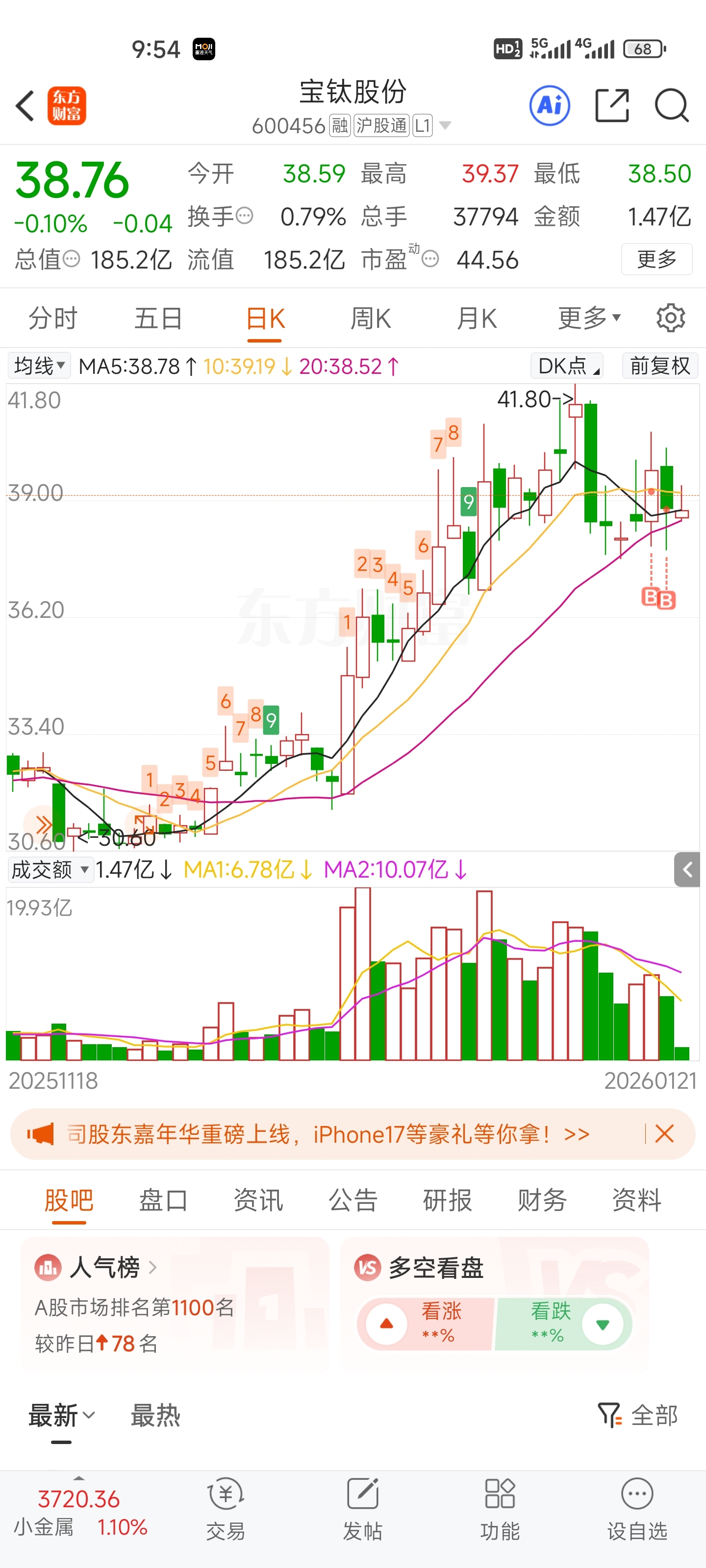 $宝钛股份(SH600456)$ 回本就出了,全是长长的上引线T勾之家#炒股日记#