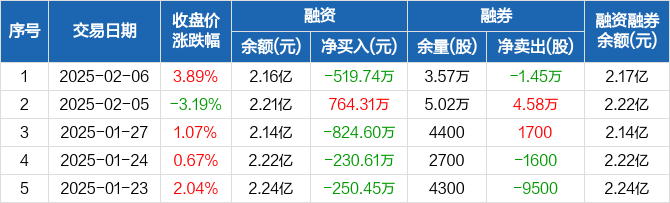 时代新材:融资净偿还519.74万元,融资余额2.16亿元(02-06)