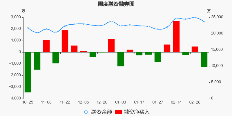 时代新材本周(2025/03/03-2025/03/07)累计涨幅达4.24%,截至3月7日最新股价报收13.51元。从增量上来看,3月3日至3月7日融资买入交易规模8017.65万元,融资偿还规模9314.8万元,期内融资净偿还1297.14万元。从存量上来看,截止3月9日,时代新材融资融券余额2.38亿元,其中融资余额规模2.37亿元,融券余额规模93.22万元。