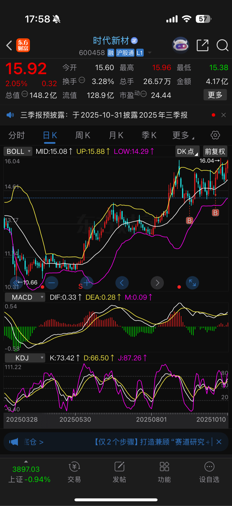 $时代新材(SH600458)$ 我还没有重仓啊……不要起飞那么快