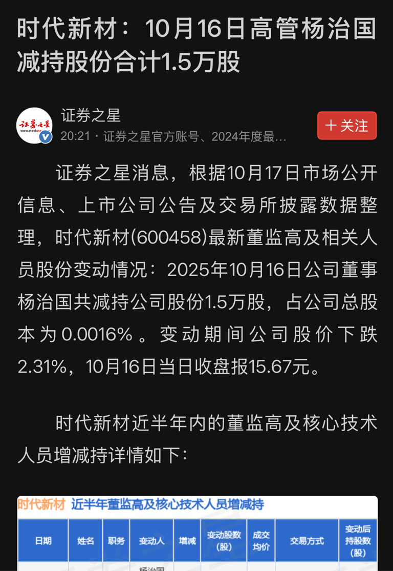 $XD时代新(SH600458)$ 高管昨天减持了,难怪大跌。服了