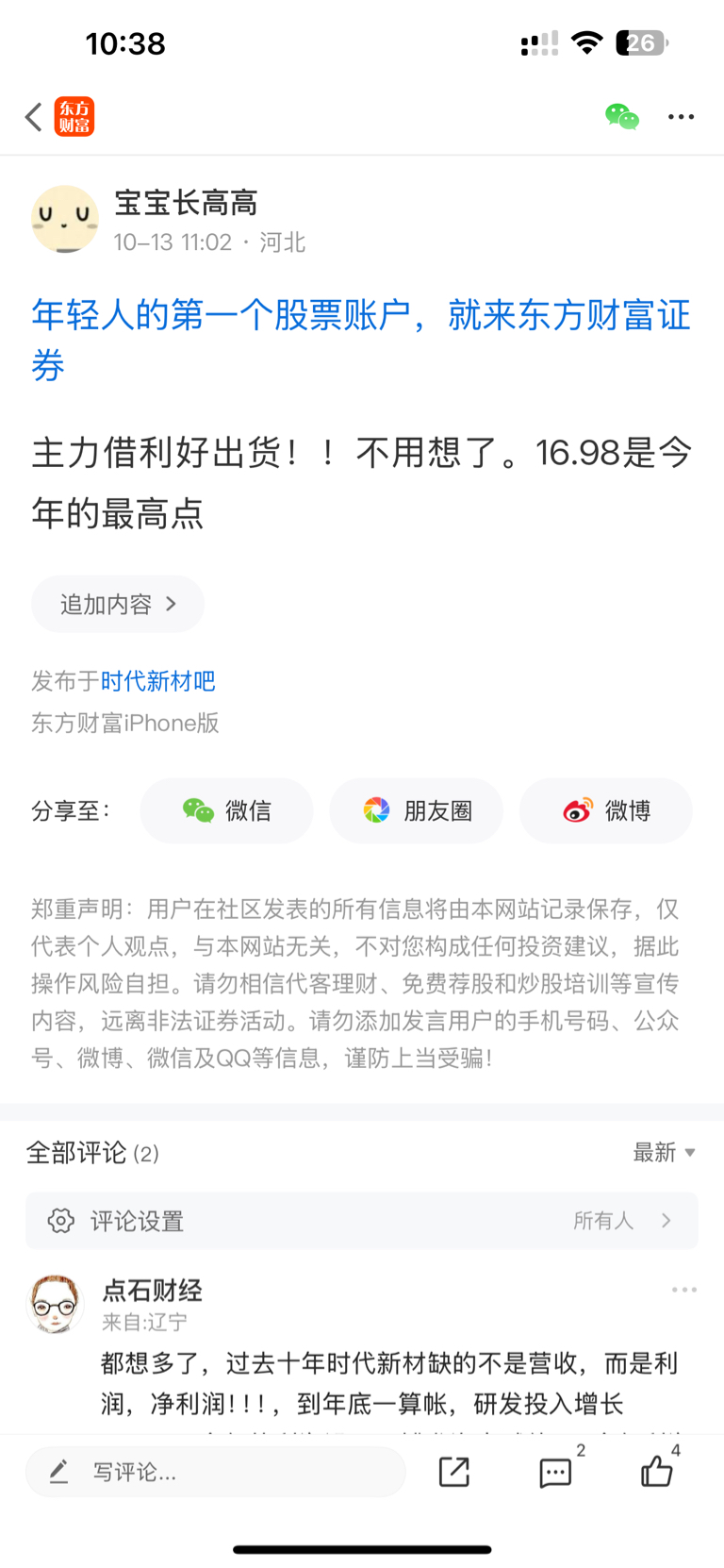 温馨提示: 1.根据《证券法》规定,禁止编造、传播虚假信息或者误导性信息,扰乱证券市场;2.用户在本社区发表的所有资料、言论等仅代表个人观点,与本网站立场无关,不对您构成任何投资建议。用户应基于自己的独立判断,自行决定证券投资并承担相应风险。《东方财富社区管理规定》