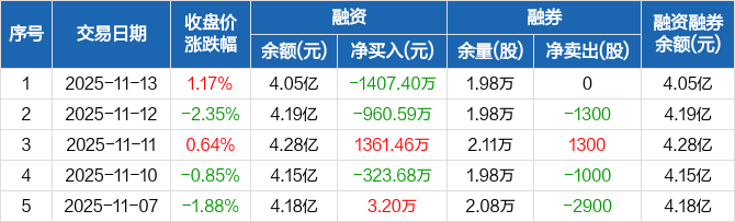 时代新材:融资净偿还1407.4万元,融资余额4.05亿元(11-13)
