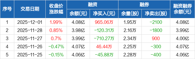 时代新材:融资净买入965.06万元,融资余额4.08亿元(12-01)