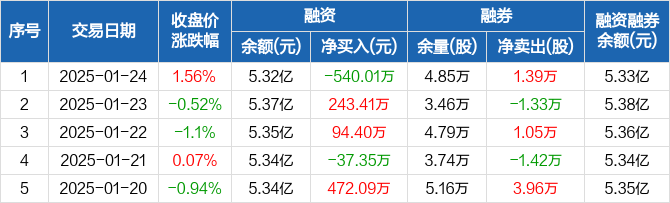 贵研铂业:融资净偿还540.01万元,融资余额5.32亿元(01-24)