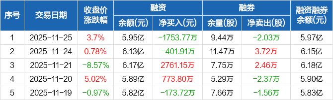 贵研铂业:融资净偿还1753.77万元,融资余额5.95亿元(11-25)