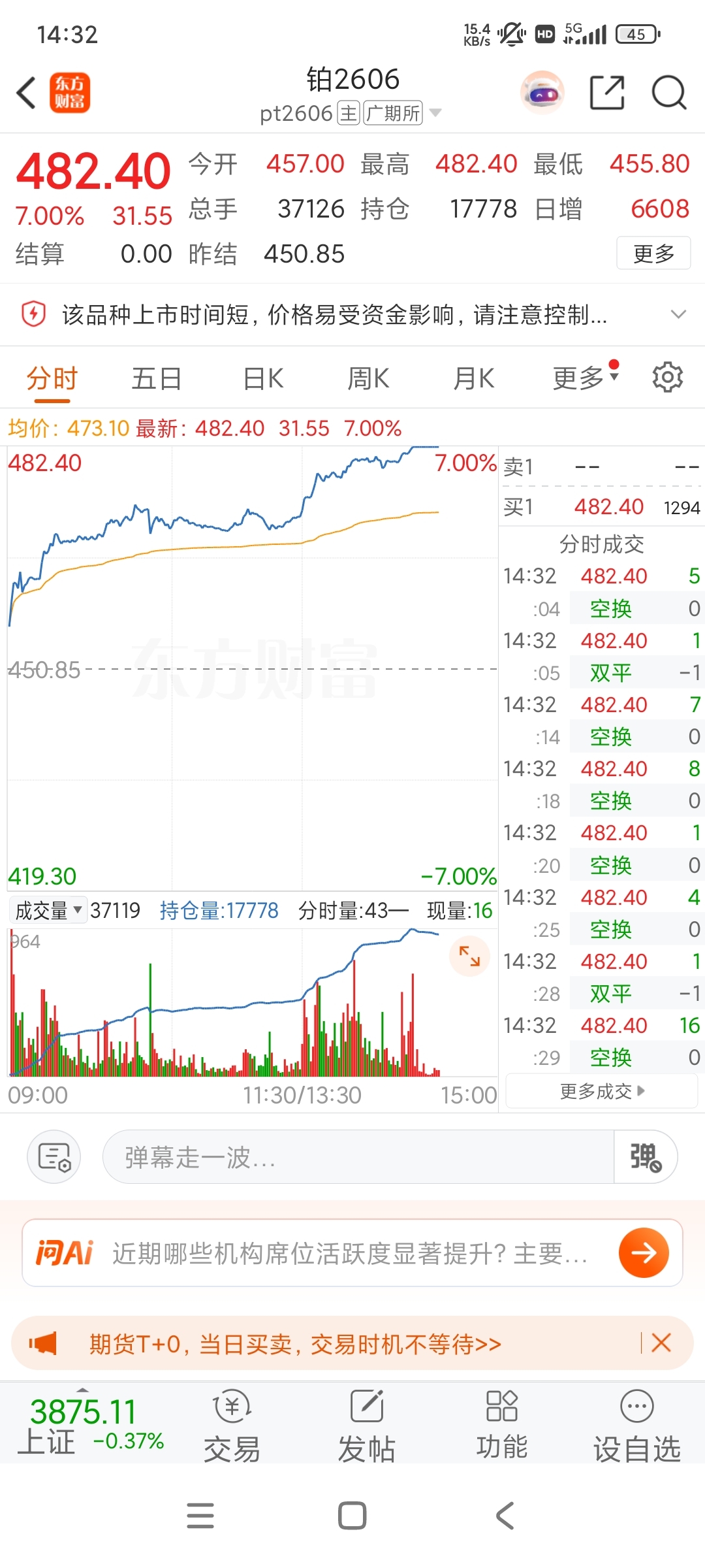 $贵研铂业(SH600459)$ 头一次遇到期货涨停板