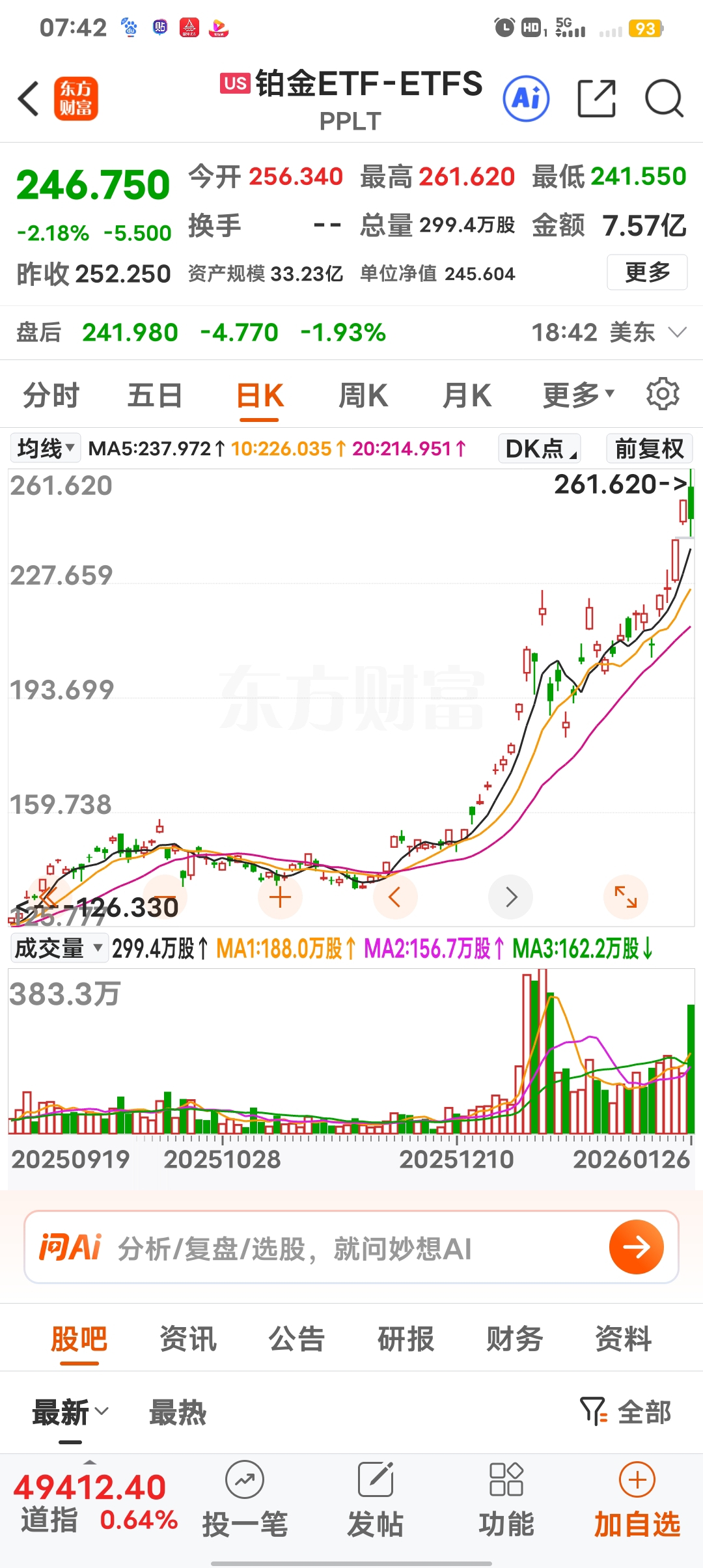 铂金价格己经到了珠穆朗玛峰峰顶,看着都吓人, 铂金期货高位放量大跳水,按K线来看,最少月级别调整,跌30%。快清仓贵研,跌停要来了。