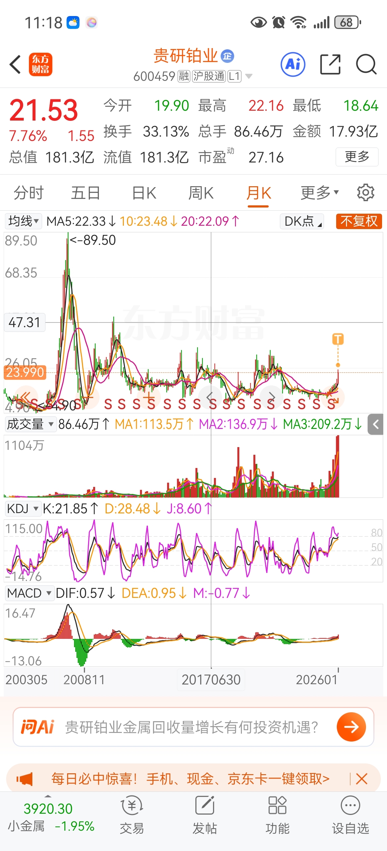 $贵研铂业(SH600459)$ 这个位置也没破前高