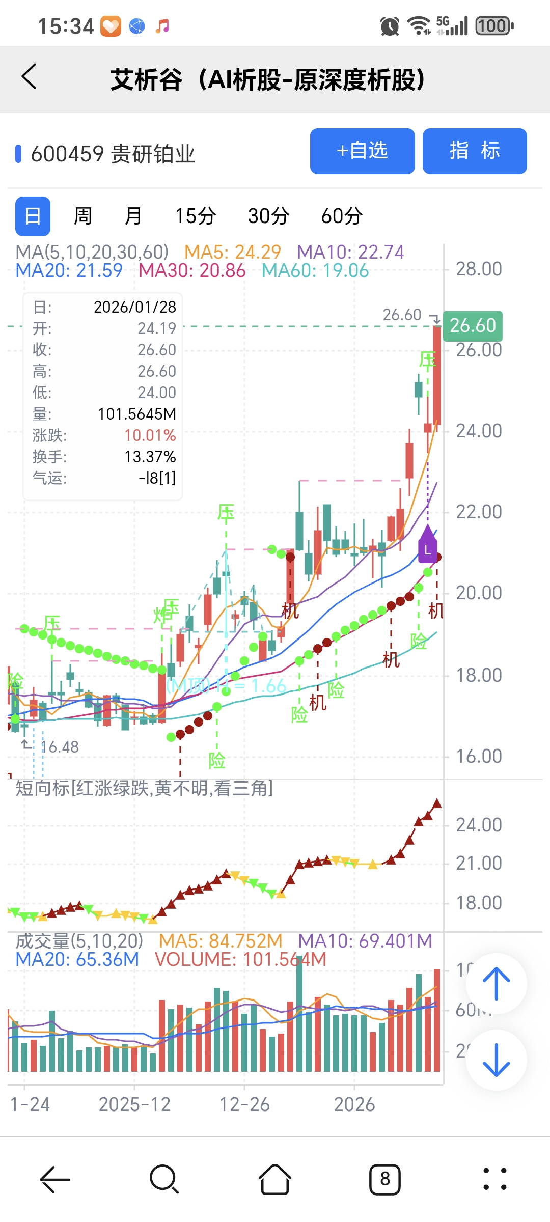 AI模型选股,量化指标识别关键点,简单技术分析确定买卖点,结合量化和人工综合运用,才能有优势。贵研铂业
