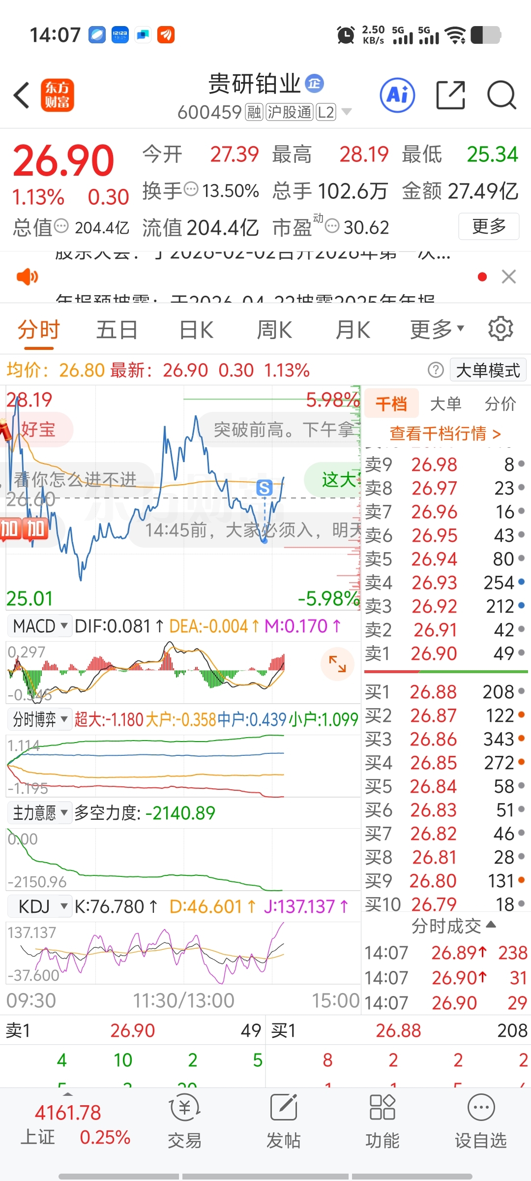 $贵研铂业(SH600459)$ 上蹿下跳的,玩儿不了