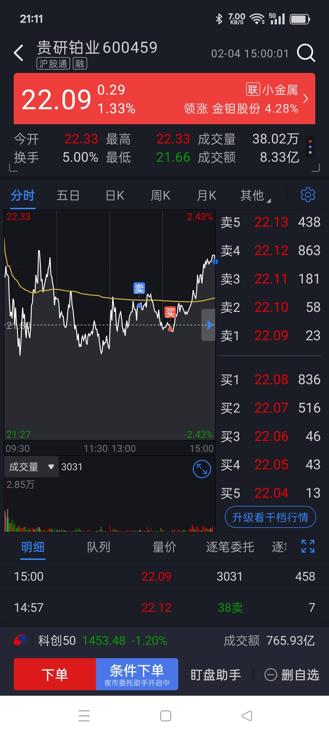 $贵研铂业(SH600459)$ 卖了想想还是买回来拿两天看看吧,早上都没打算出