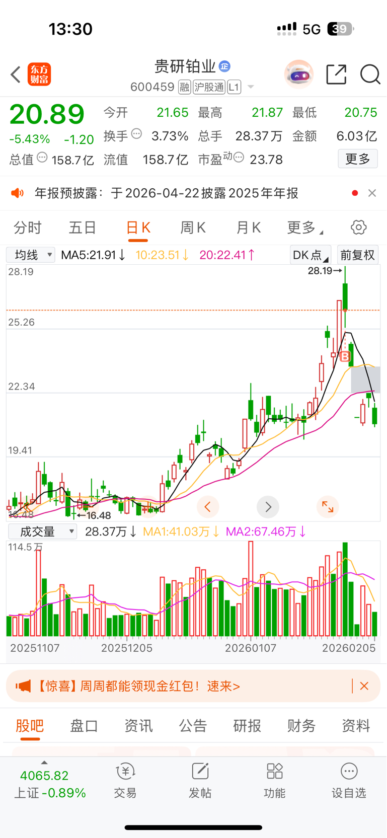 $贵研铂业(SH600459)$ 我点子就这么背吗?挂在山顶上