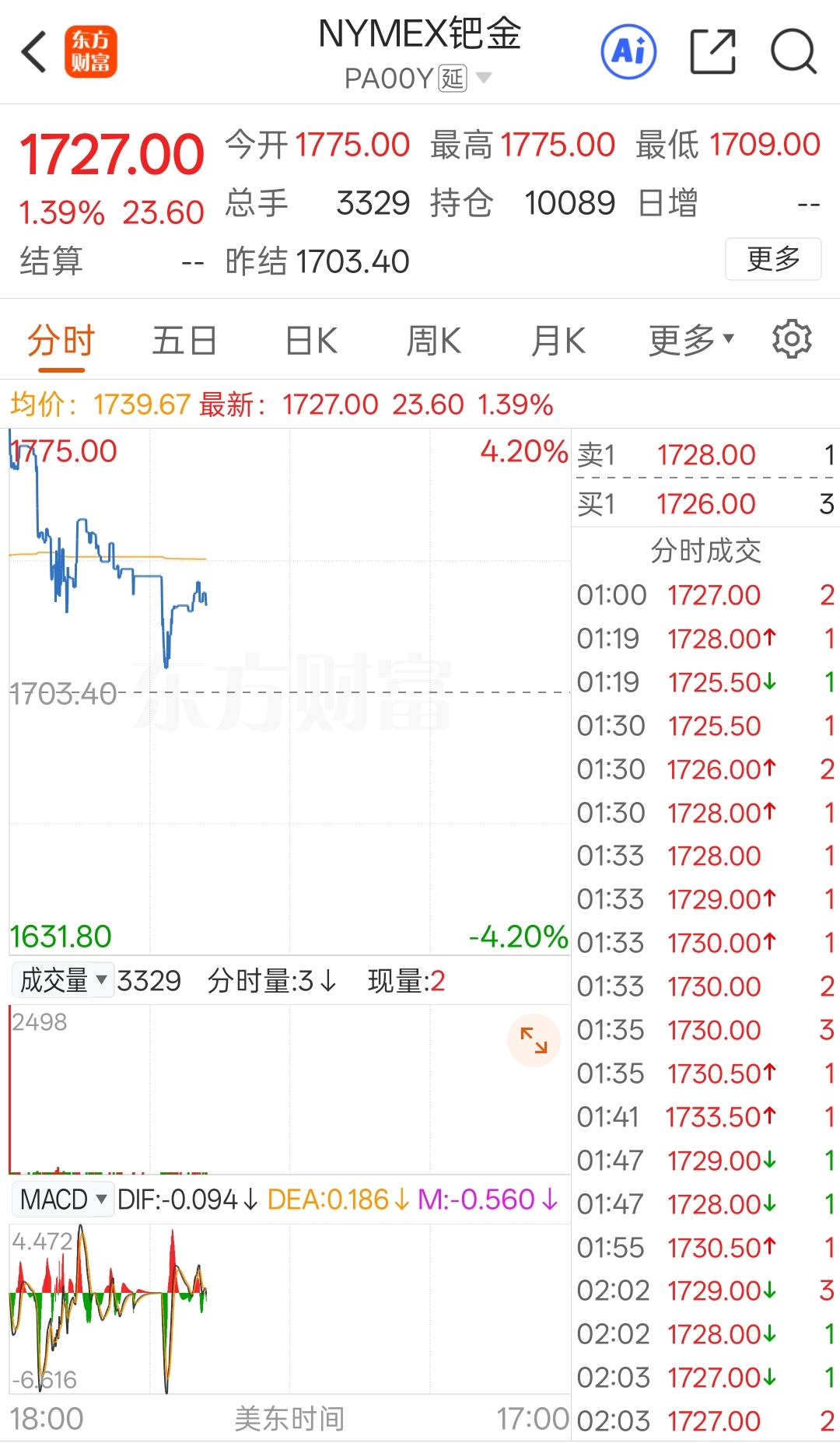 $贵研铂业(SH600459)$ 纽约钯金期货价格上涨,利好贵研铂业,贵研铂业是钯金的绝对龙头企业!