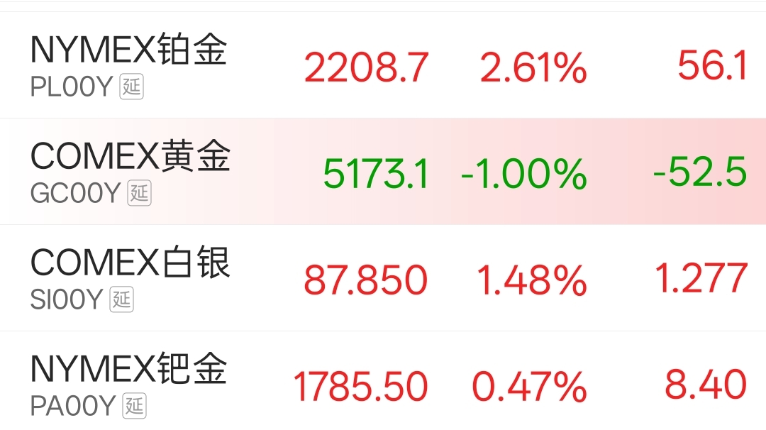 $贵研铂业(SH600459)$ 纽约钯金和铂金的期货都在上涨!明天值得期待