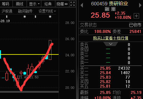 贵研铂业 黄线(庄家成本线),自救回血,触线回血,卖出了结。