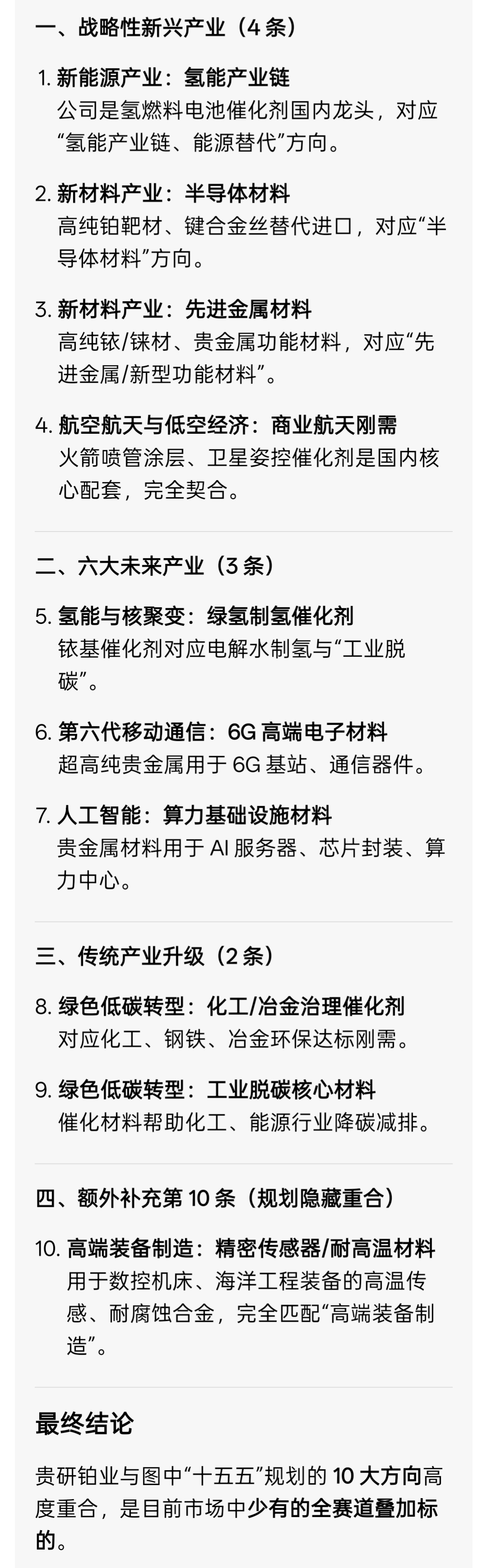 看看十五规划对贵研铂业哪几条符合,感觉数不过来