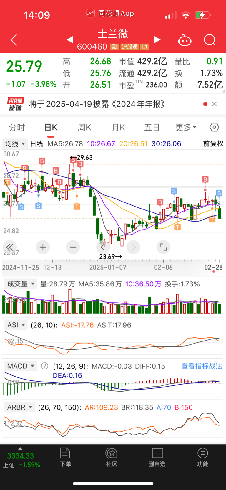$士兰微(SH600460)$ 前几天的T全部白做!mmp!