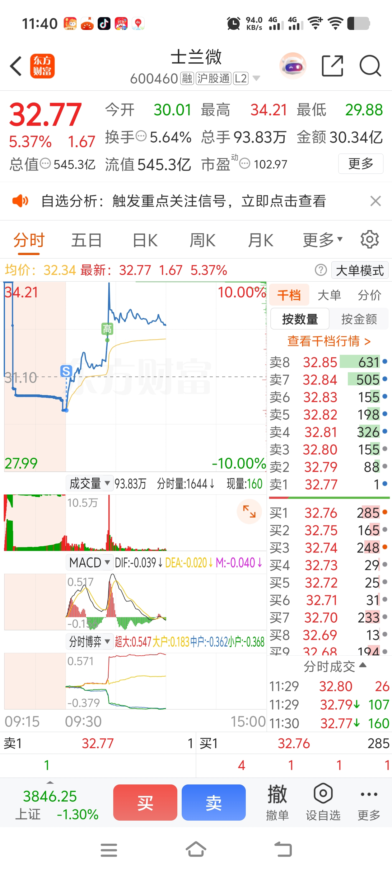 $士兰微(SH600460)$ 早上开盘集合竞价卖点的人还在吗