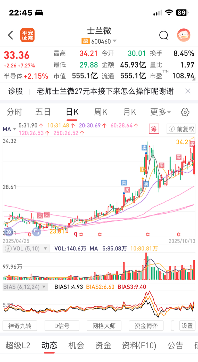 这是本人对士兰微的实际操作情况,请网上各位老师指教。