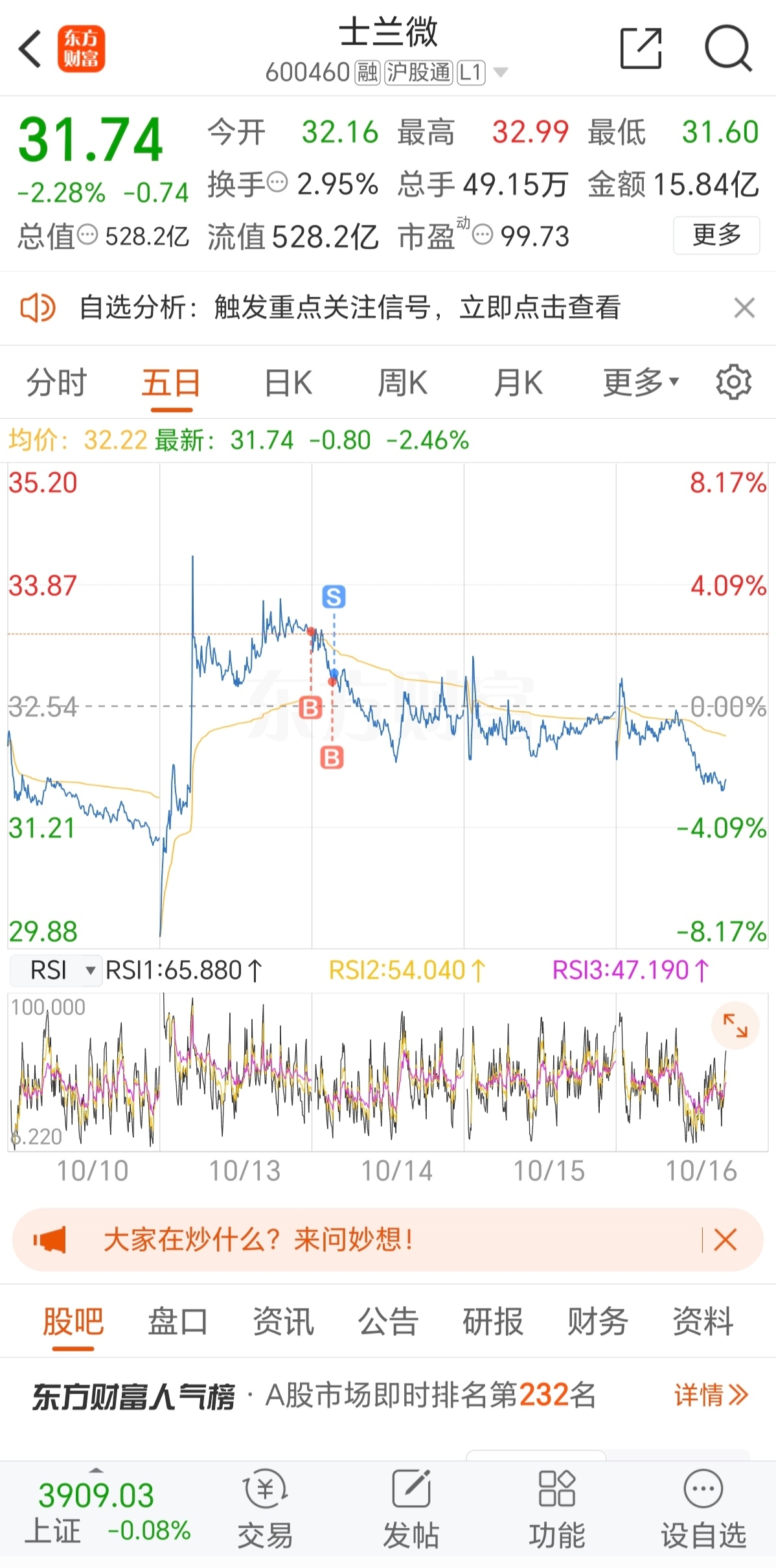 $士兰微(SH600460)$ 看到破前高进了4成仓,三天了,似的