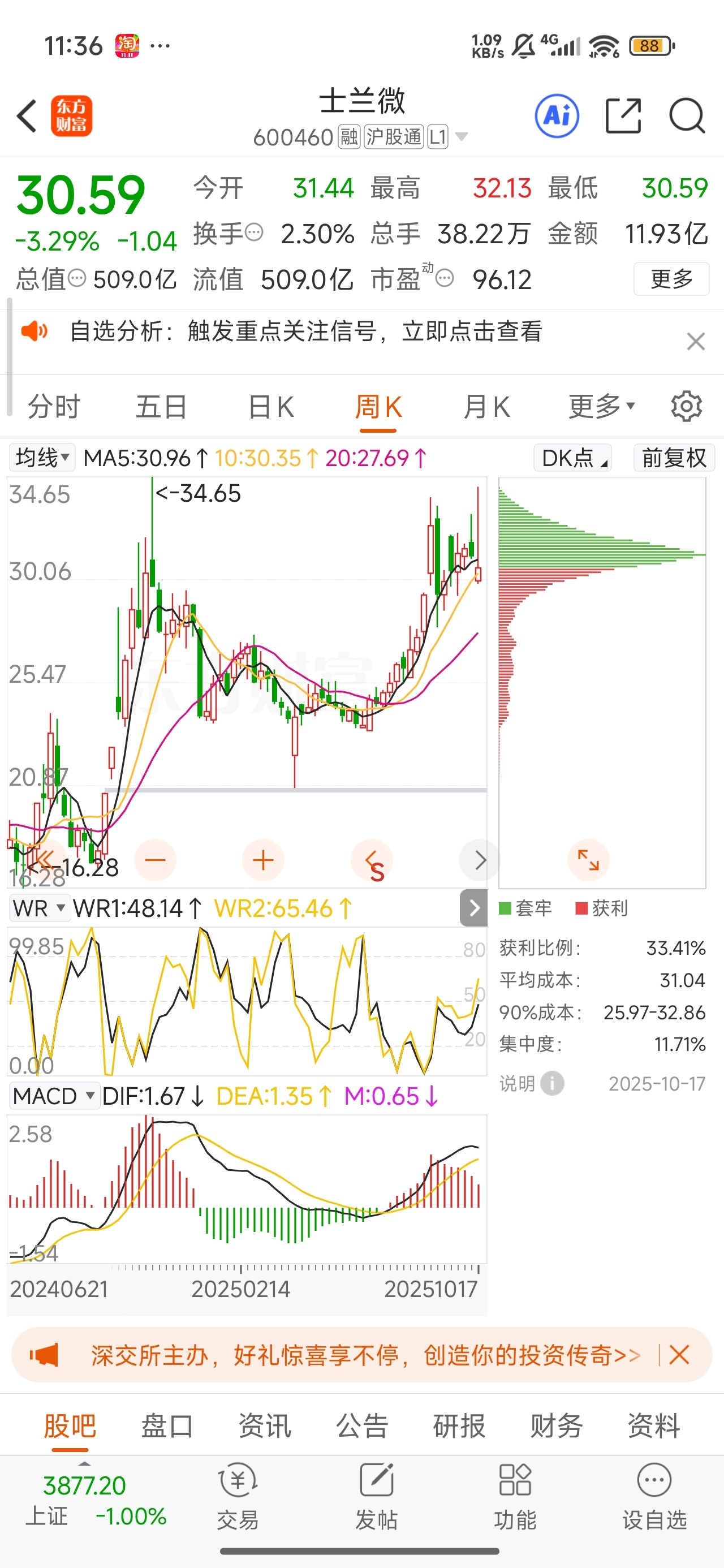 $士兰微(SH600460)$ 周线都跌破,谁爱玩谁玩吧,拿了半个月最高浮盈12个点没走,格局就剩2个点