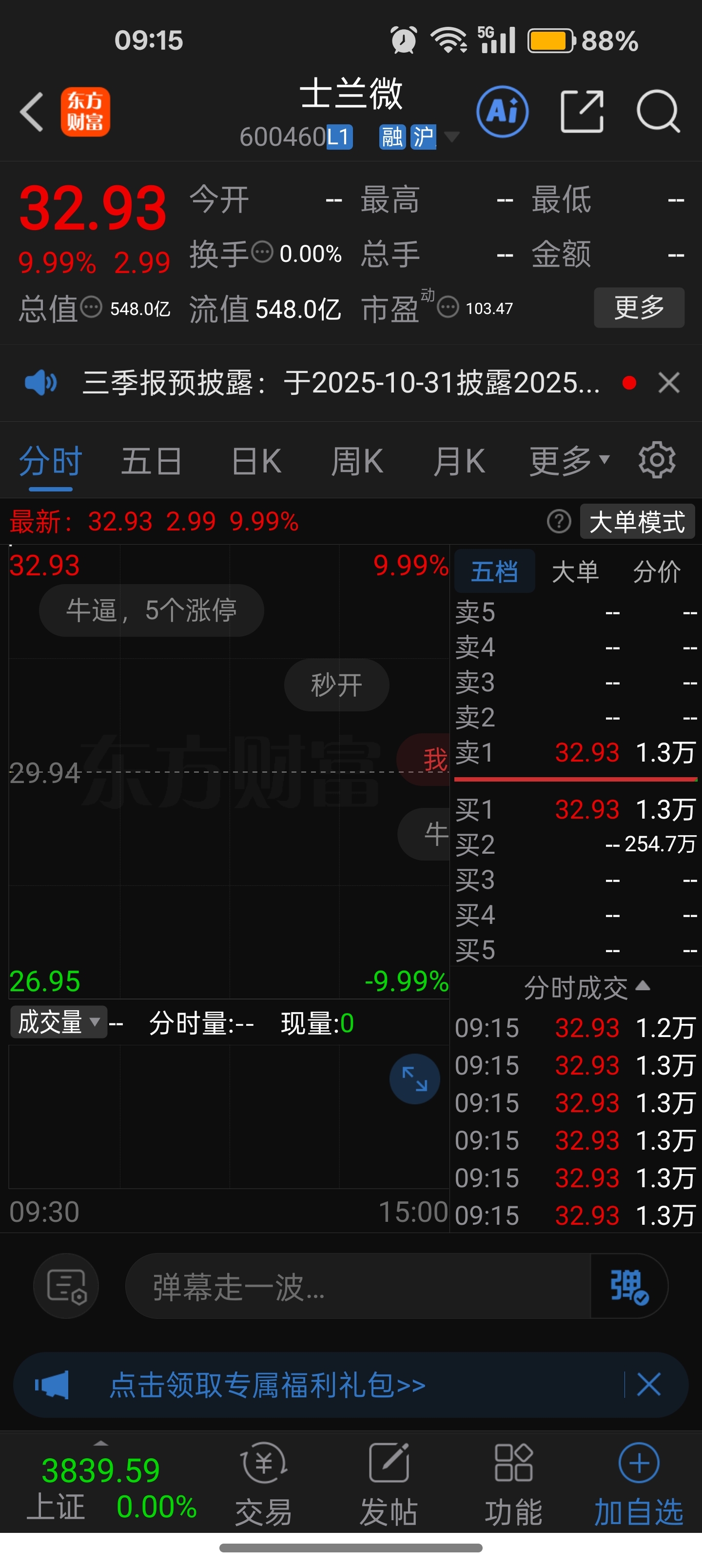 $士兰微(SH600460)$ 放心,收盘会封住的。开盘那一刻2.5亿股封单,打开只是让获利盘及不坚定者充分换手,明天秒板,烂板出妖股