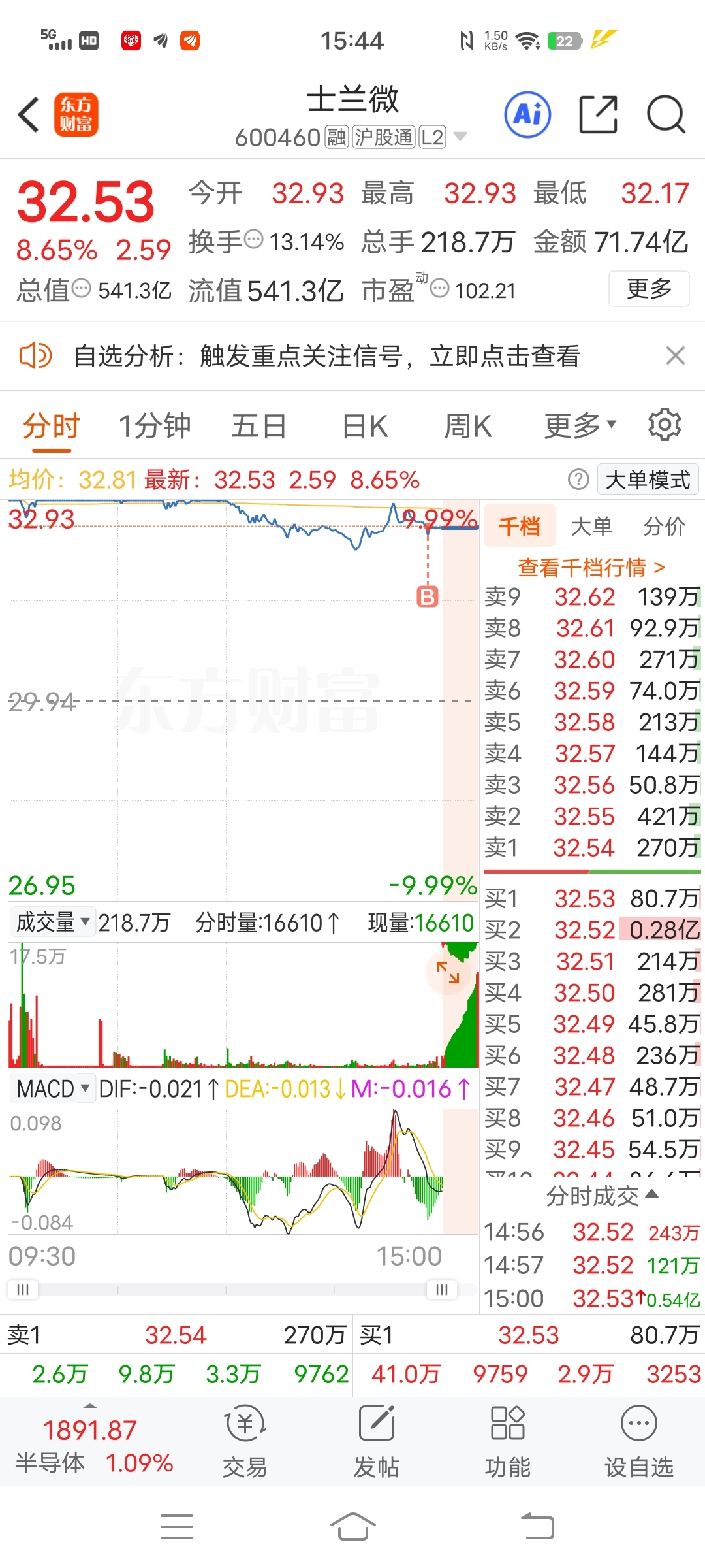 $士兰微(SH600460)$ 你们都说炸板明天会大跌,我就不信尾盘买进去了
