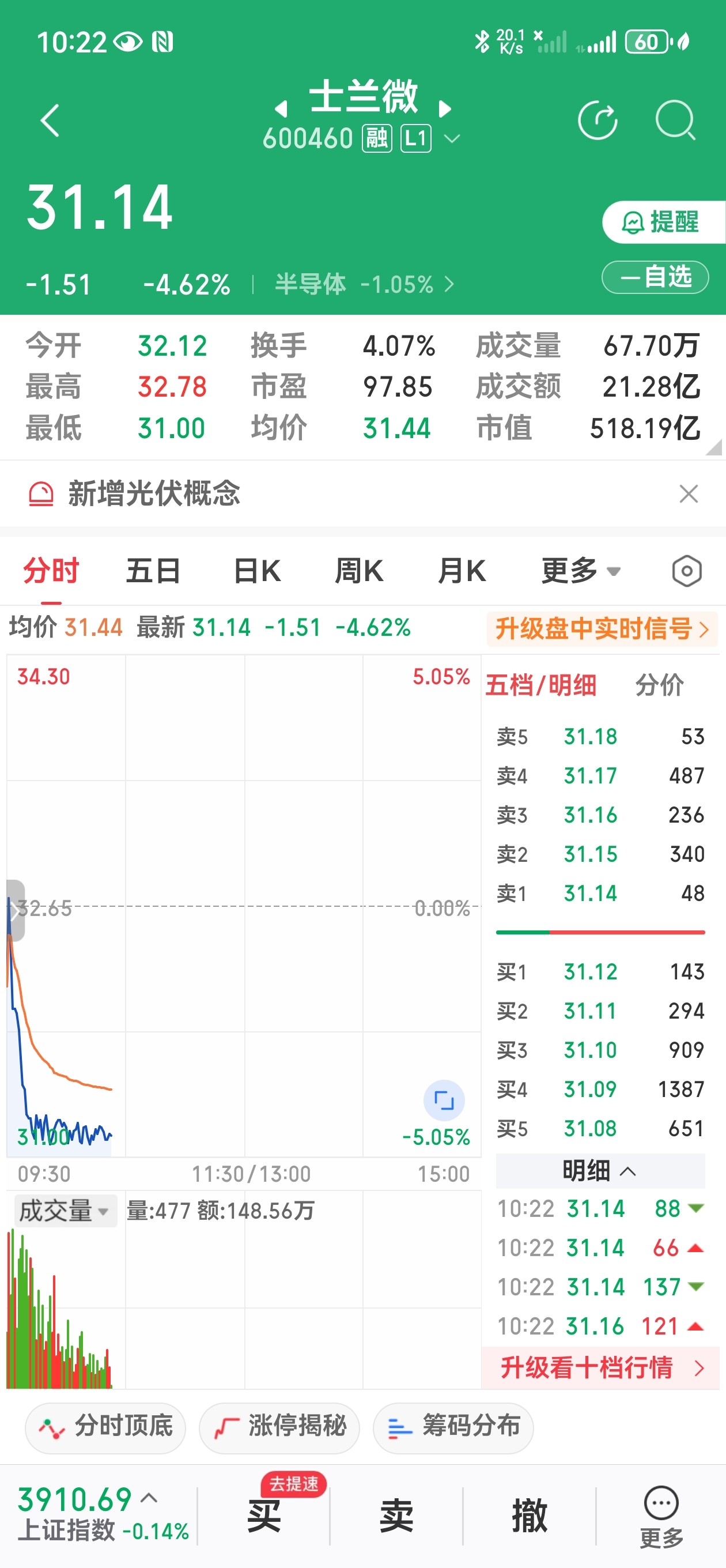 $士兰微(SH600460)$ 同仓补入,收盘做T