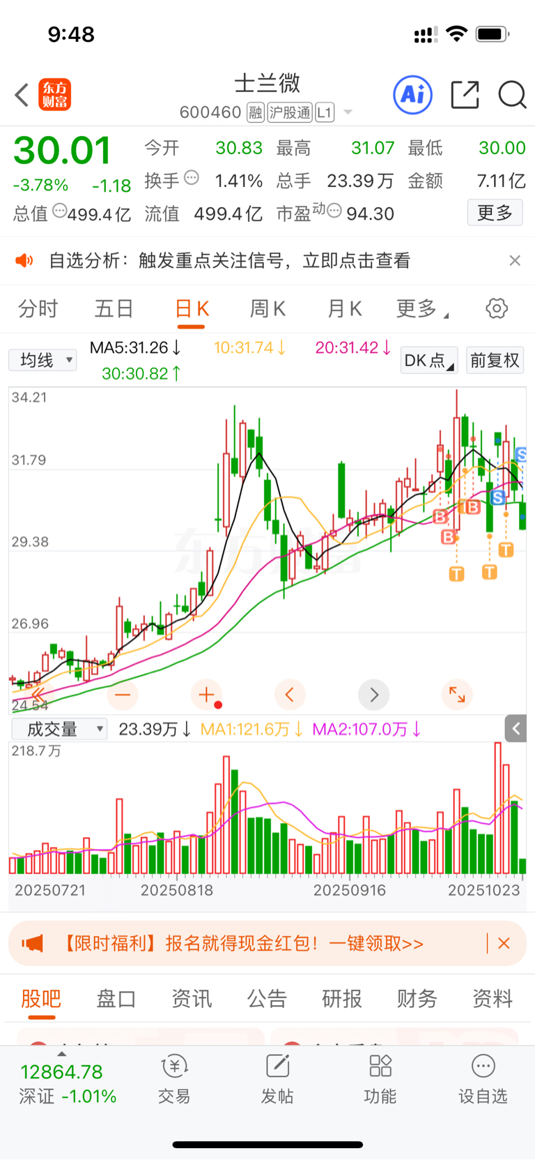 $士兰微(SH600460)$ 两次解套都没卖,留点仓溜了,10、11月股市很难做,gjd天天拉银行,个股跌成啥样了