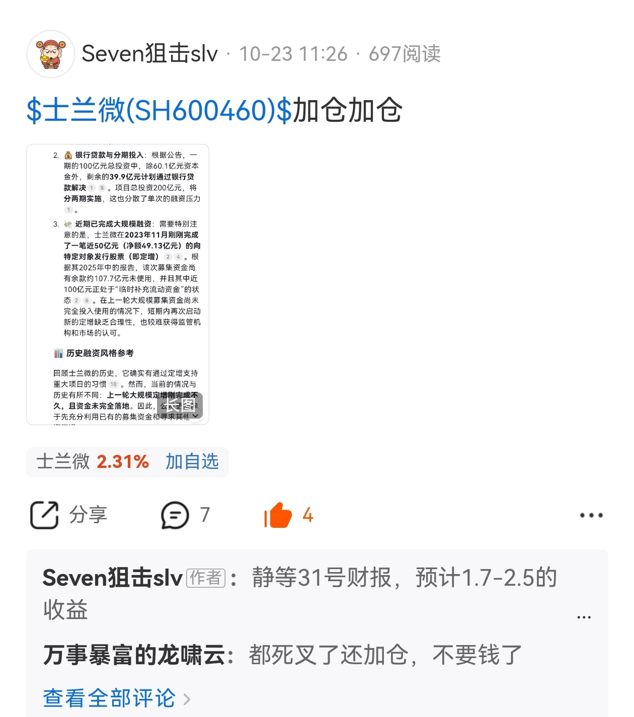 $士兰微(SH600460)$ 继续做t降低成本,看好,31号之前最后的机会