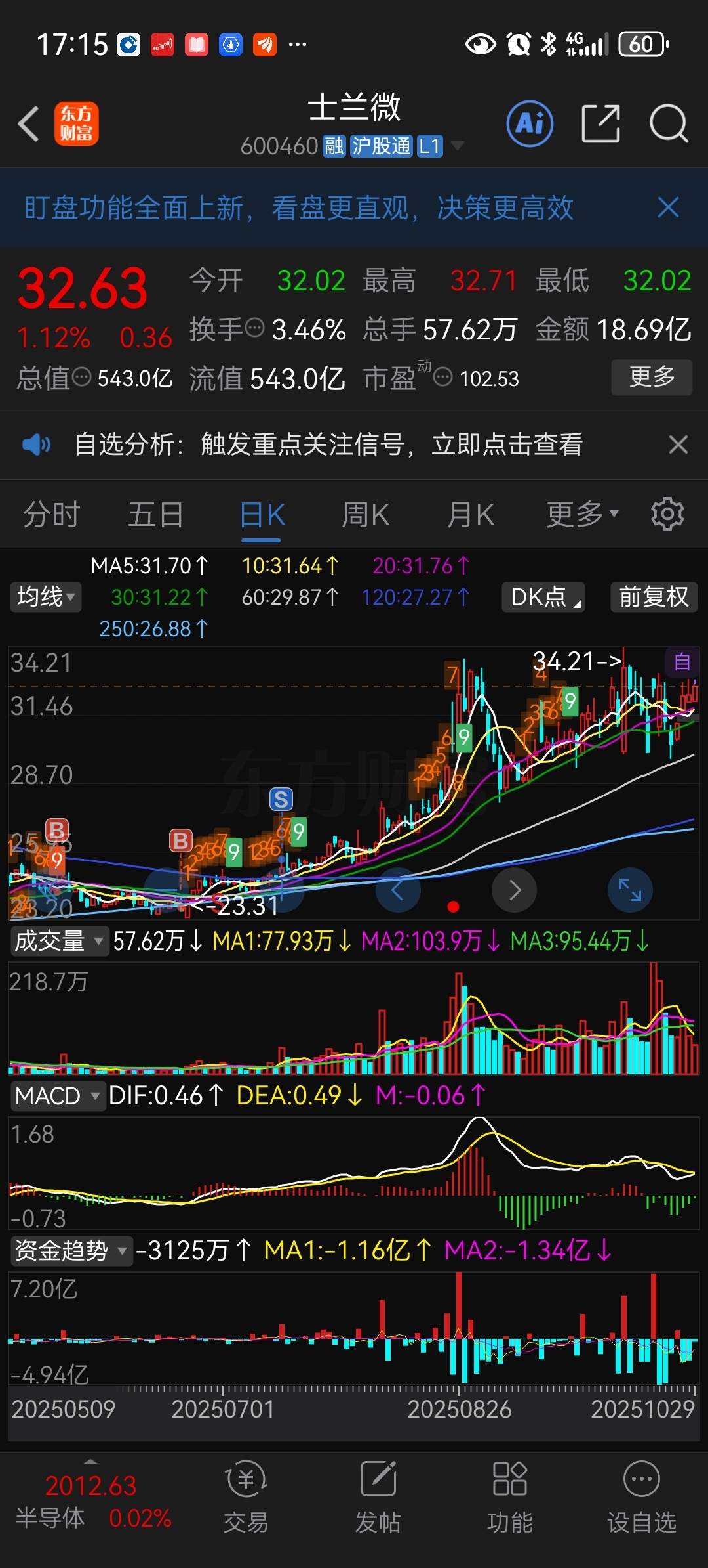 $士兰微(SH600460)$ 前面买了几天,拿不住卖掉了,现在好想再买回来呀?大家说现在买合适吗