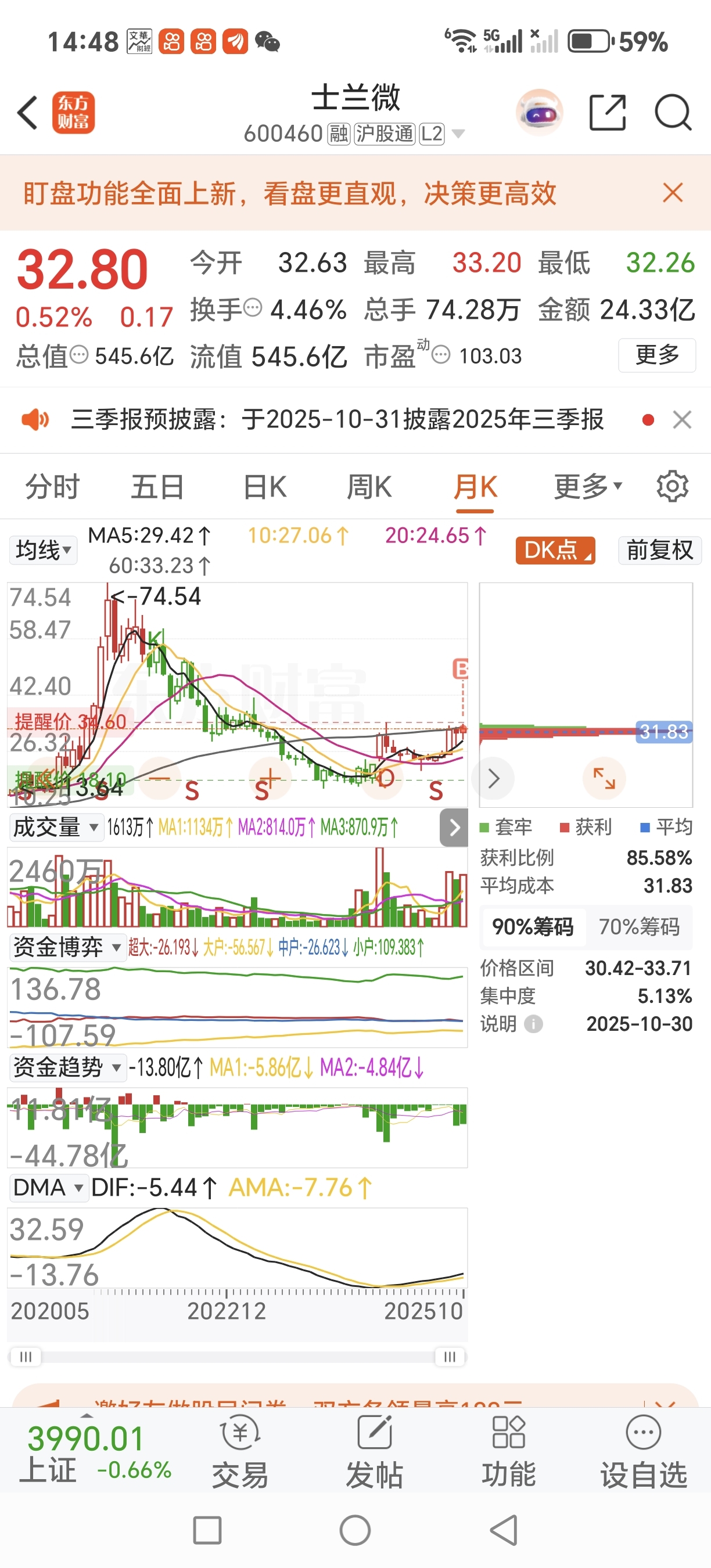 $士兰微(SH600460)$ 主力今天买进1.6亿跟着主力己买入,明天必大涨或涨停。