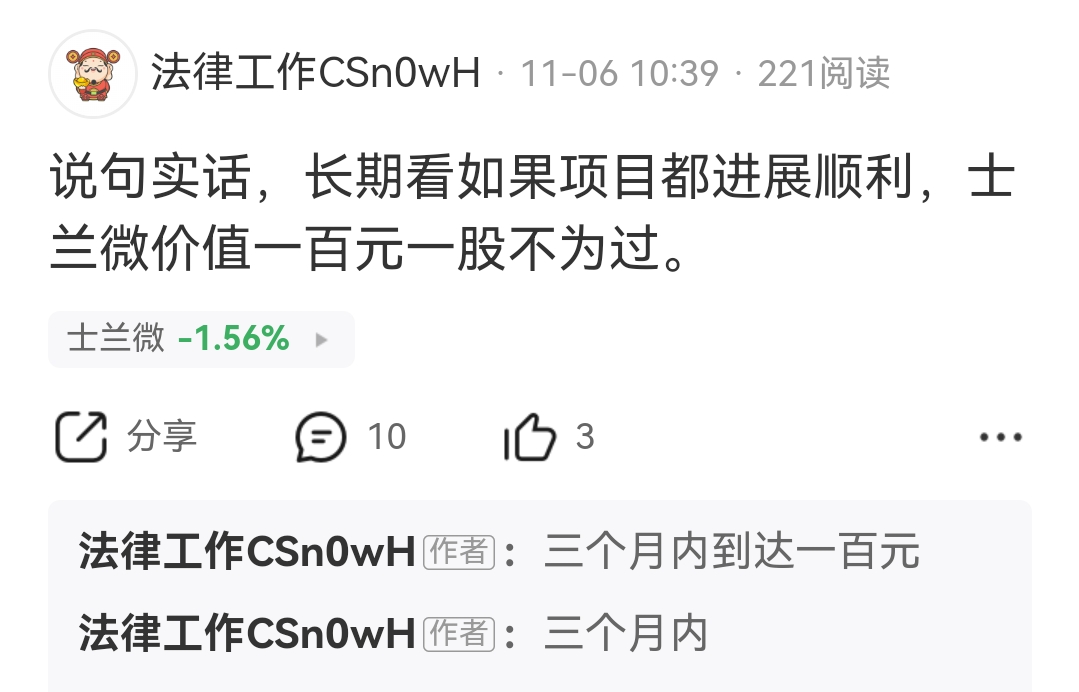 温馨提示: 1.根据《证券法》规定,禁止编造、传播虚假信息或者误导性信息,扰乱证券市场;2.用户在本社区发表的所有资料、言论等仅代表个人观点,与本网站立场无关,不对您构成任何投资建议。用户应基于自己的独立判断,自行决定证券投资并承担相应风险。《东方财富社区管理规定》