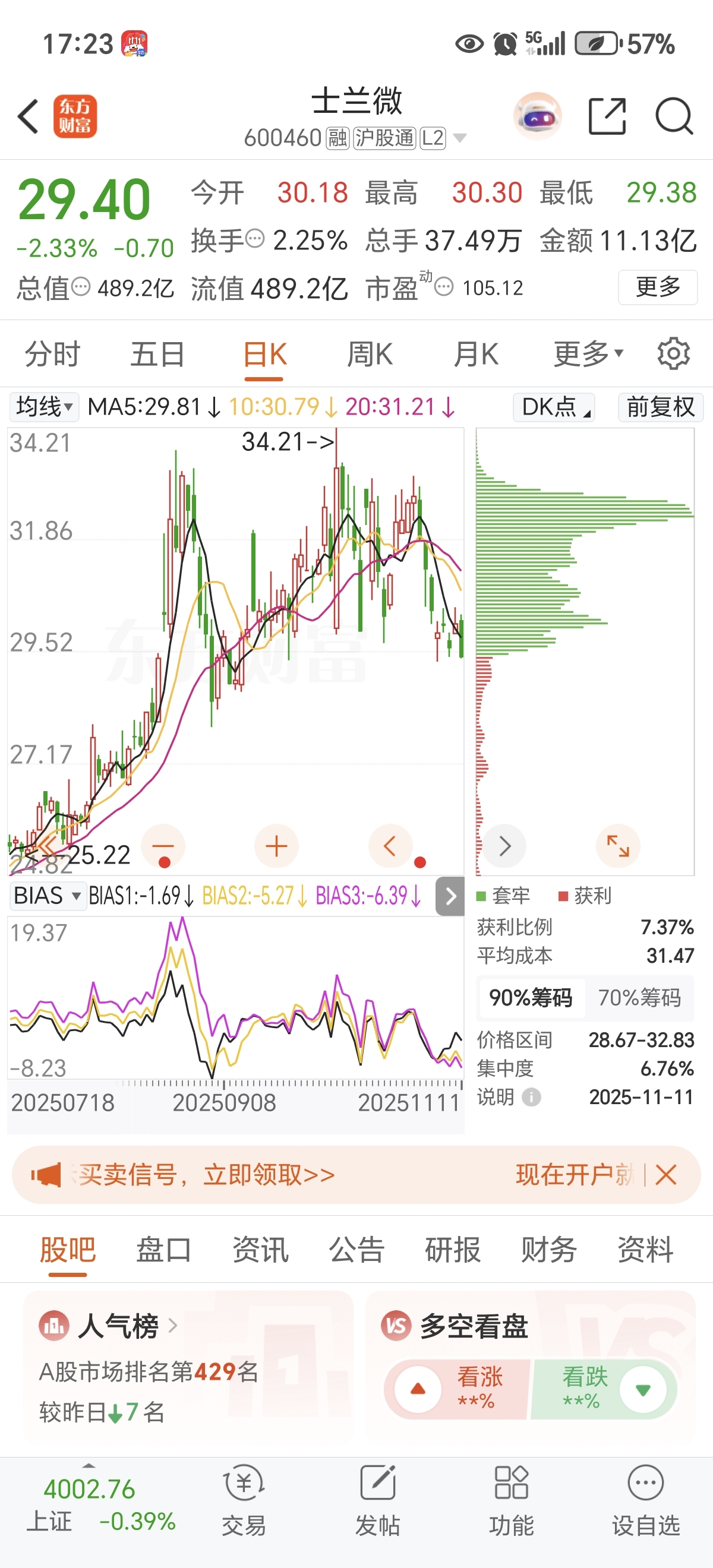$士兰微(SH600460)$ 千亿市值士兰微,高科技公司,套牢9成散户