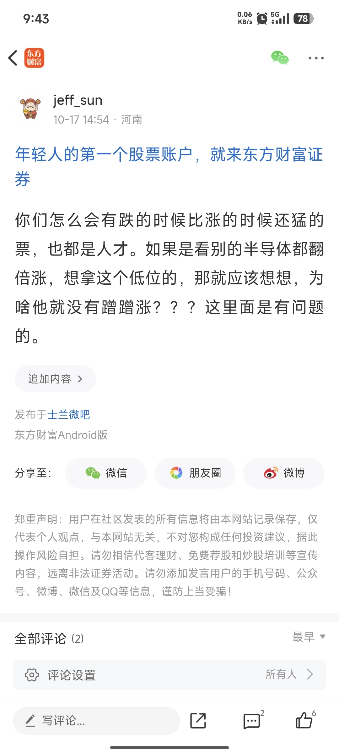 温馨提示: 1.根据《证券法》规定,禁止编造、传播虚假信息或者误导性信息,扰乱证券市场;2.用户在本社区发表的所有资料、言论等仅代表个人观点,与本网站立场无关,不对您构成任何投资建议。用户应基于自己的独立判断,自行决定证券投资并承担相应风险。《东方财富社区管理规定》