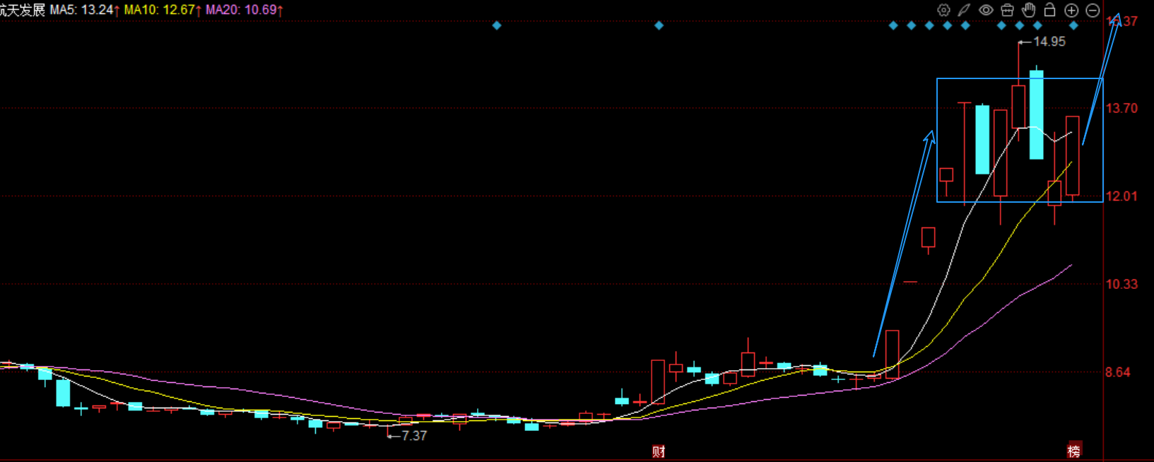 标的上,板块最核心就是航天发展了,公司以空天信息业务为主,应用于气象数据领域,打造了天气预报气象平台。正宗商业航天概念,且公司叠加福建概念,双题材加持,市场非常青睐,周五下午福建出利好,航天发展跟随福建板块涨停,最后周末商业航天多个利好发酵,那今天溢价没有问题了,好在周五的量能比较大,超过51亿,这种情况下就不会高开太多,如果看好的话,换手出现4%以内的机会还可以介入。持股的话,多格局,这一波回踩支撑线后反弹,力度很强,有望突破前高走出第二波,尽量拿住了。