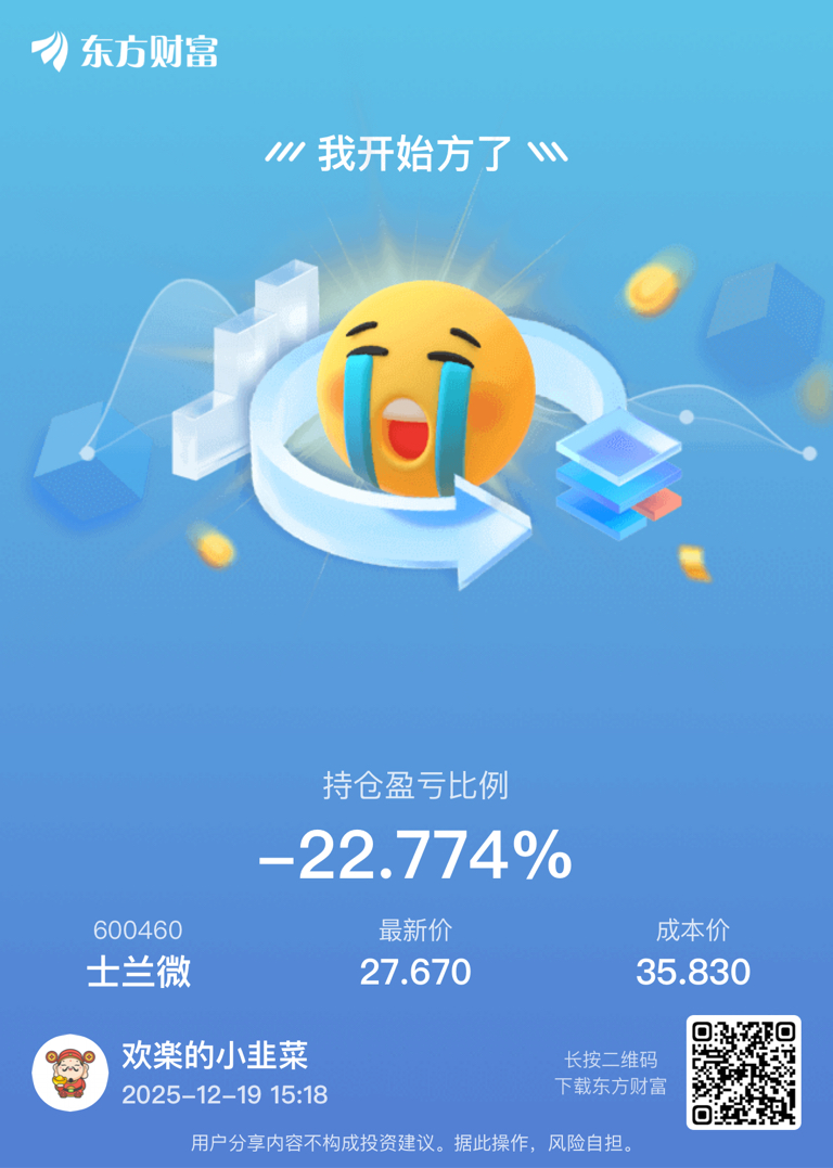 $士兰微(SH600460)$ 操作错了一次,至今亏22个点,持股已经400天,完全看不到回本的希望