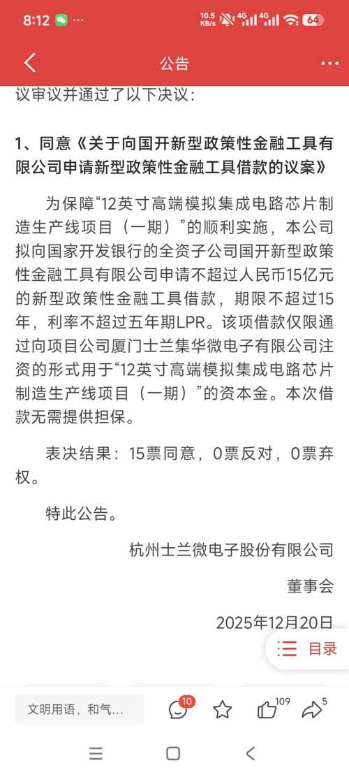 士兰微牛啊,向国开新型政策性金融工具有限公司借款15亿,利率极低!厦门模拟芯片建厂这是获得了国家支持!