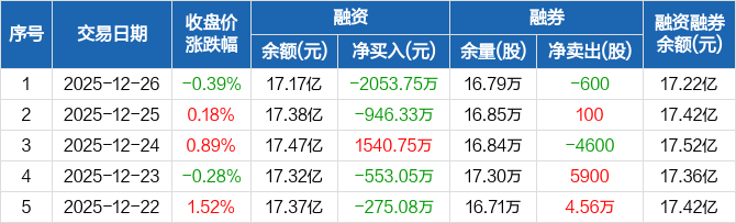 士兰微:融资净偿还2053.75万元,融资余额17.17亿元(12-26)