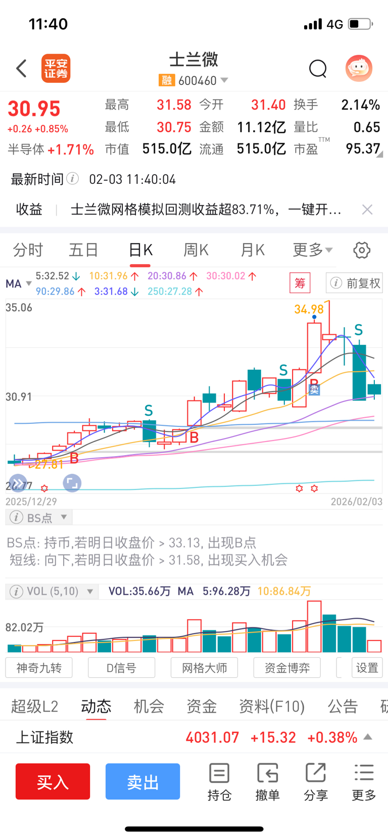 $士兰微(SH600460)$ 回调到缺口,我就又进来