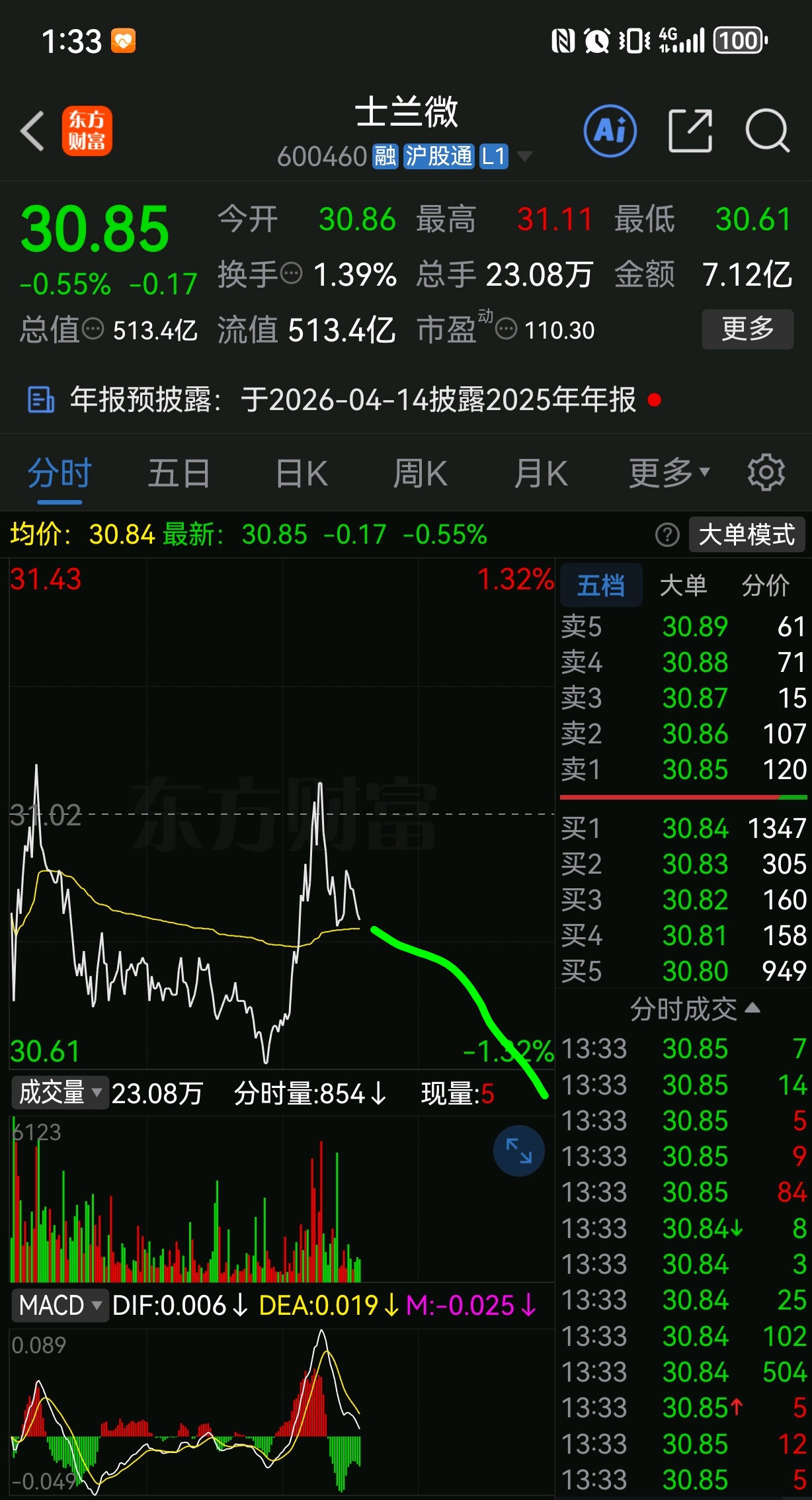 $士兰微(SH600460)$ 这种走势到收盘,看看准确不
