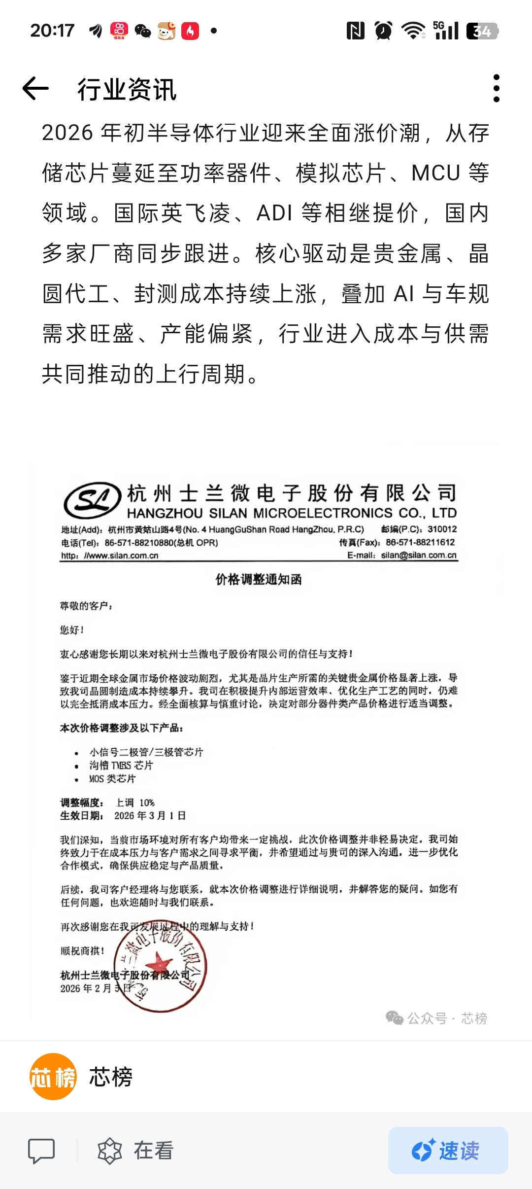 $士兰微(SH600460)$ 涨价通知发了