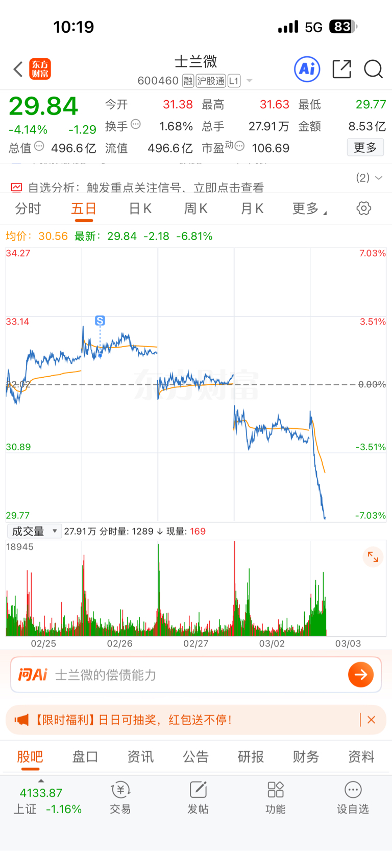 温馨提示: 1.根据《证券法》规定,禁止编造、传播虚假信息或者误导性信息,扰乱证券市场;2.用户在本社区发表的所有资料、言论等仅代表个人观点,与本网站立场无关,不对您构成任何投资建议。用户应基于自己的独立判断,自行决定证券投资并承担相应风险。《东方财富社区管理规定》