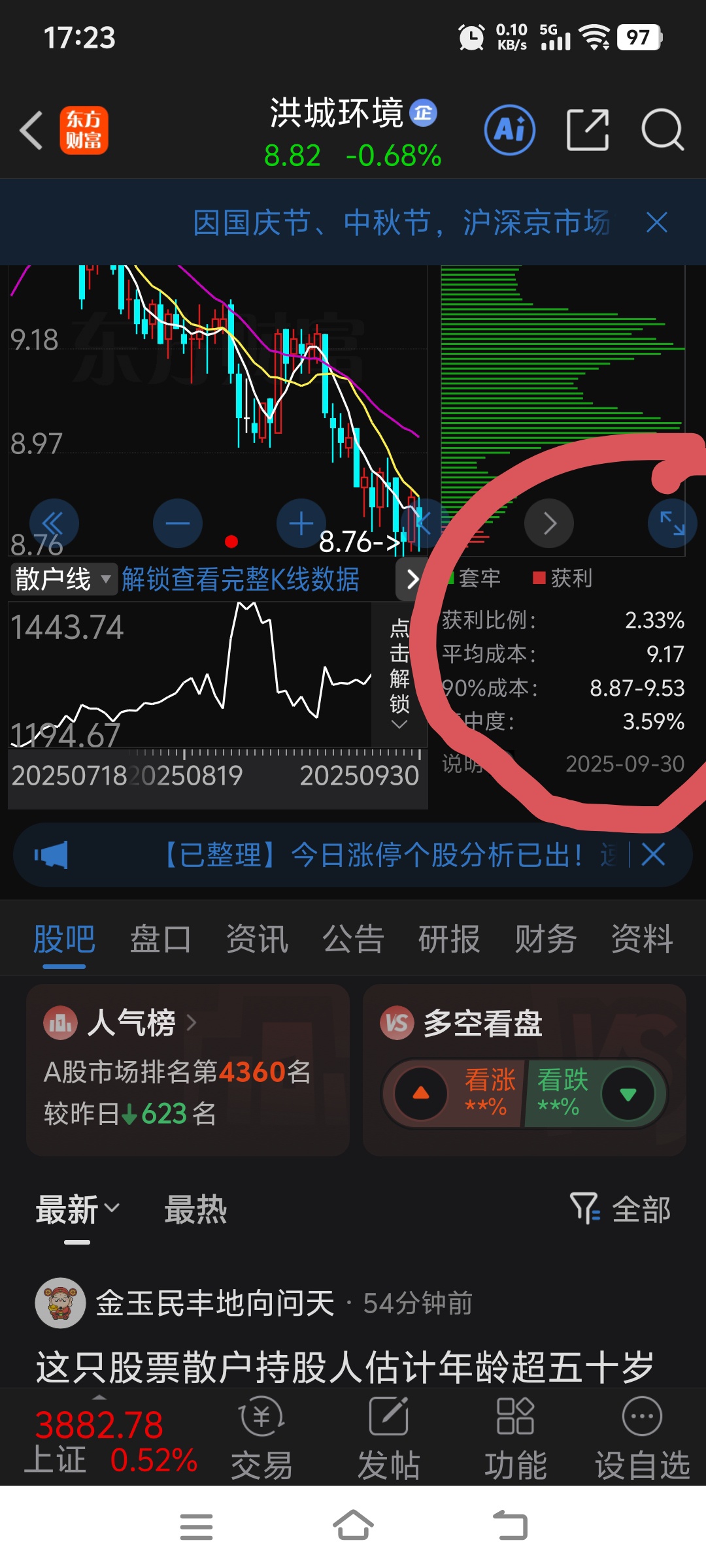 $洪城环境(SH600461)$ 这个股赚钱的比例很低