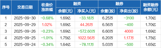 洪城环境:融资净偿还33.18万元,融资余额1.69亿元(09-30)
