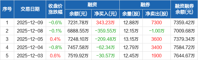 洪城环境:融资净买入343.23万元,融资余额7231.78万元(12-09)