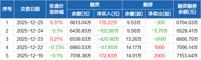 洪城环境:融资净买入176.22万元,融资余额6613.04万元(12-25)
