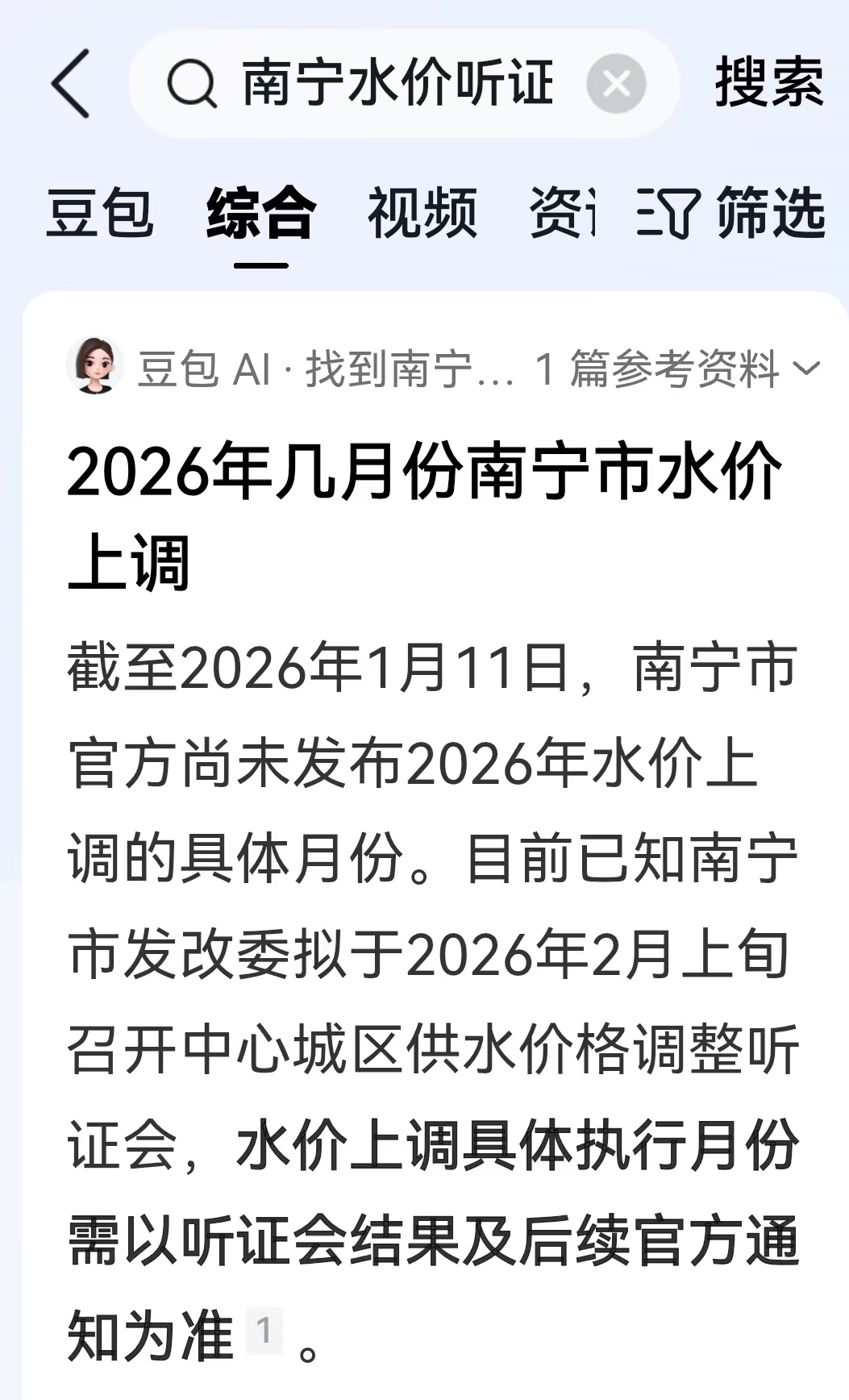 豆包说:南宁市要召开调整水价听证会了,南昌会不会也调整?