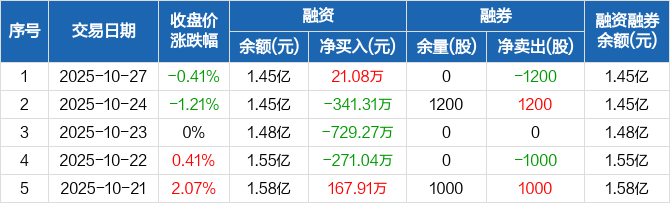 好当家:融资净买入21.08万元,融资余额1.45亿元(10-27)